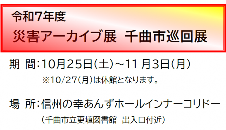 【10/27-11/3開催】災害アーカイブ展 千曲市巡回展が開催されます
