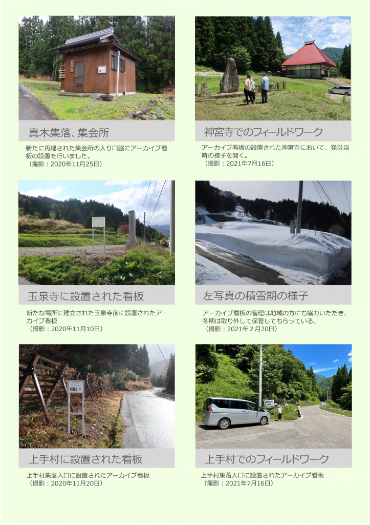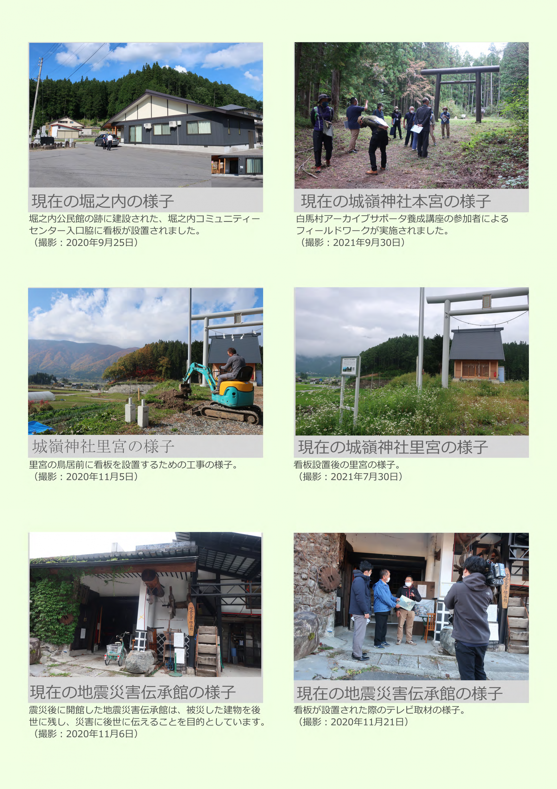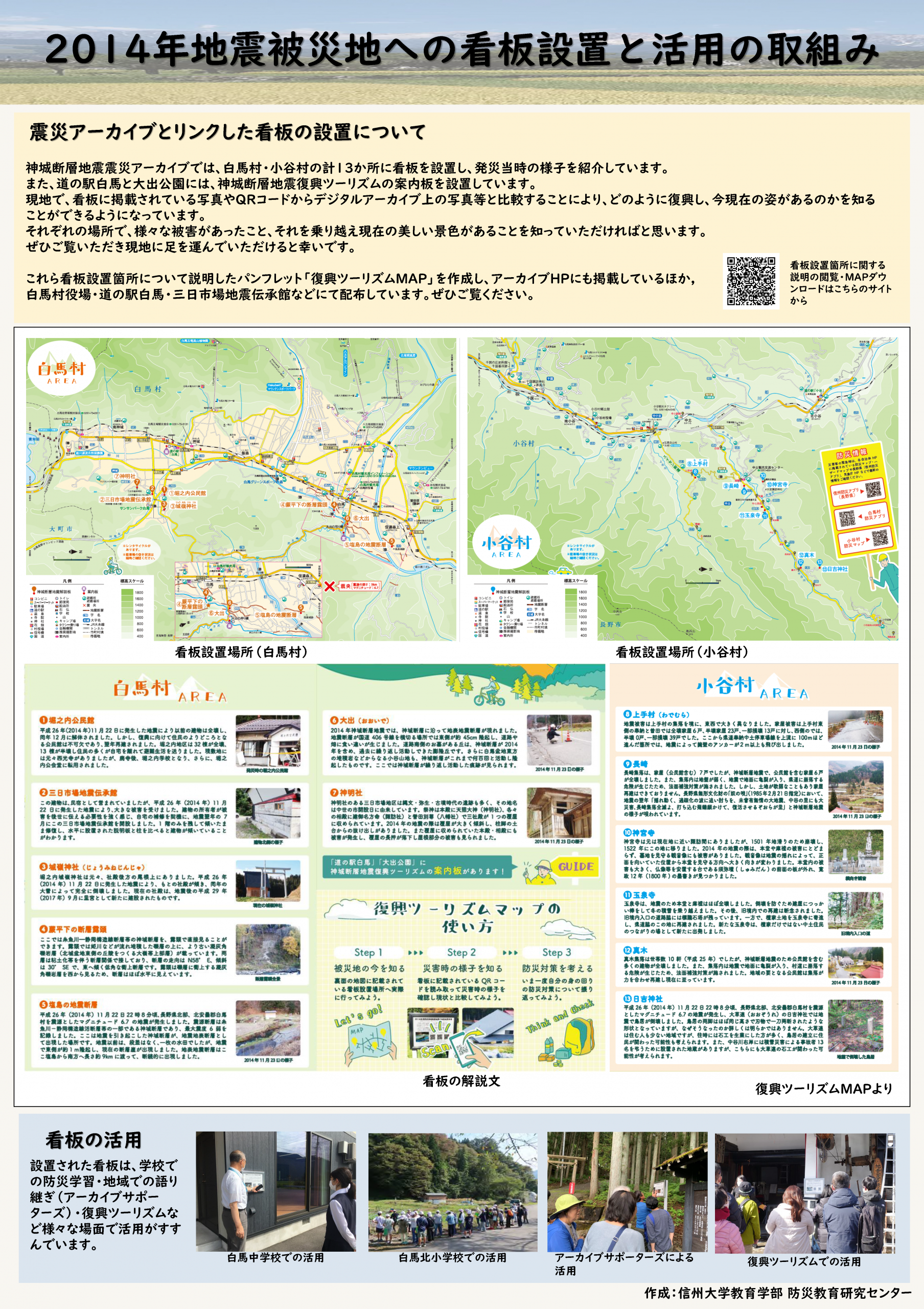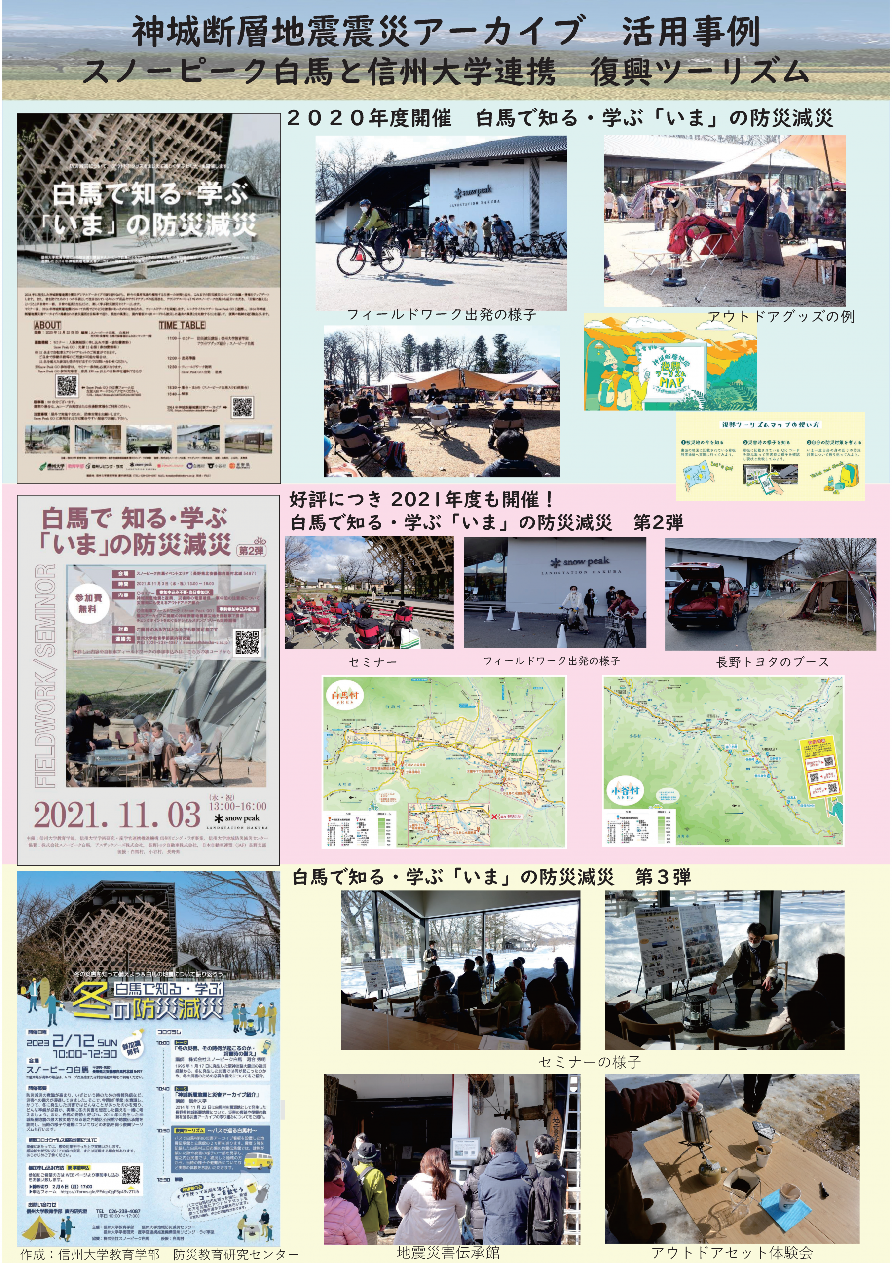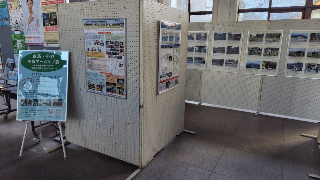 ・内容:神城断層地震発生当時~現在を紹介する写真パネル,神城断層地震震災アーカイブの紹介,白馬村小谷村児童生徒による防災学習成果,アーカイブサポーターズによる復興ツーリズム紹介 など