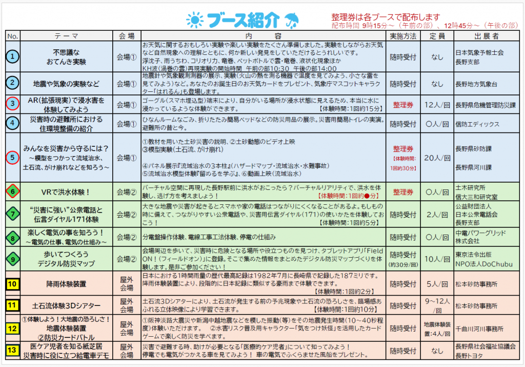 おてんき・ぼうさい教室 ブース紹介のリーフレットは、こちらから