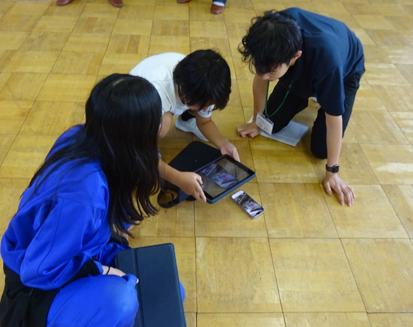 アプリ導入後、登下校や生活圏が近い地区ごとにグループを作り、フィールドワークの計画を立てた。事前に防災アドバイザーに相談したところ、「フィールドワークの手本」を記したスライドを提供していただいた。身近な地域の地震災害や水害の危険性について再度学習し、スライドを参考に、調査すべきポイントを考えていった。その中で、「地震の際、崩れやすい場所や倒れやすい場所がないか調べるとよいのではないか。」、「水害の際、水が溢れやすい場所や水に浸かりやすい場所を見つけていけば良いのではないか。」と見通しを持つことができた。その後、グループに分かれて、通学路や自分たちの家の周りの危険箇所を想像しながら、調査する場所やルートを自分たちで決めていった。