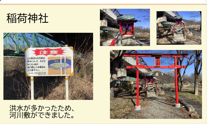2月には、善光寺大地震の際の水害について学び、災害に関わる地域の遺構について調べ、その中のいくつかをフィールドワークで探索した。実際の地を訪れることで、身近な地域での災害や防災への想いや工夫にふれることができた。